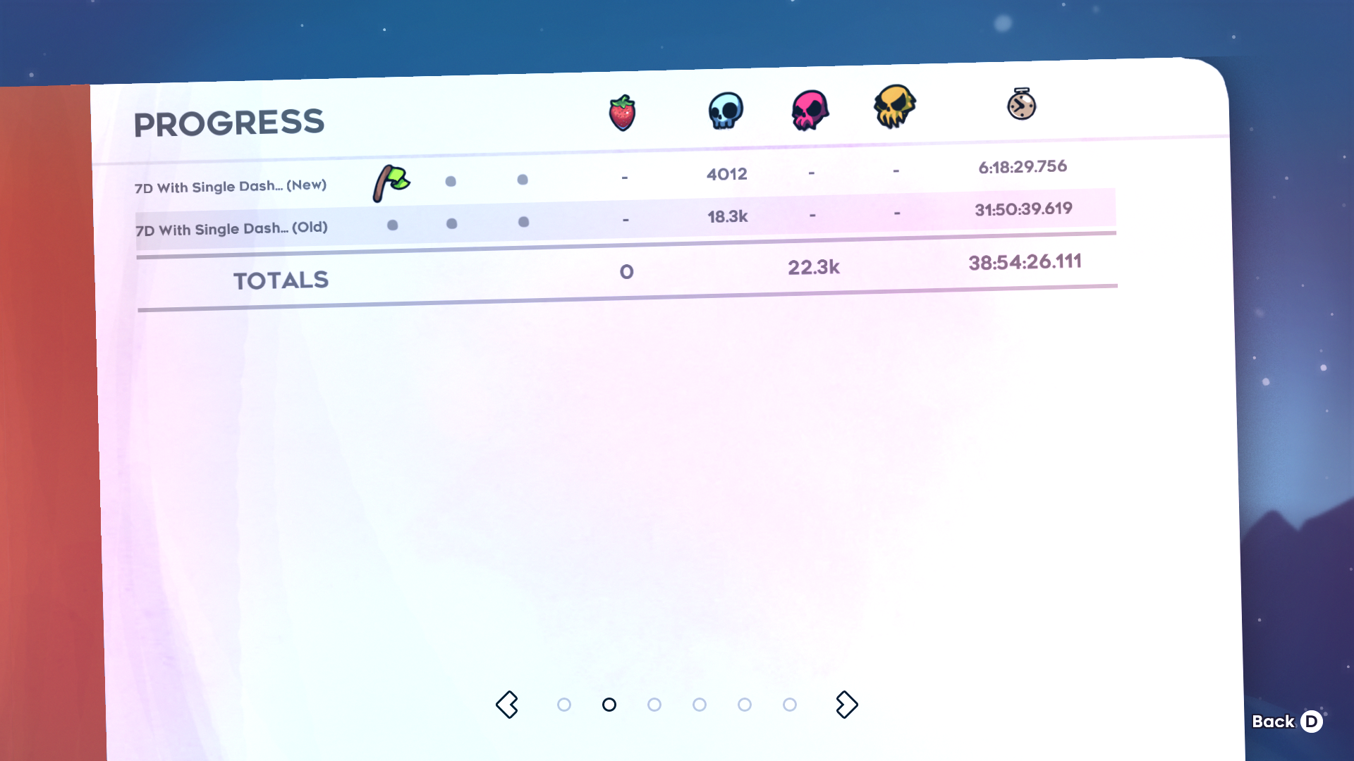 | Stars | Map | Creator | Type | Opinion | Proof | Date | 1★ | [CC] Crouch Climb City | SaladLaoo | Clear (No Video) | - | Catbox | 03/04/2025 | 1★ | [SJ] Pinball Purgatory | Maya | Full Clear (No Video) | - | Catbox | 05/08/2025 | 1★ | [SJ] The Solar Express | Soloiini | Full Clear (No Video) | - | Catbox | 05/08/2025 | 1★ | 7D With Single Dash... (Old) | fishtank_underflow | Clear (No Video) | - | Catbox | 10/07/2025 | 1★ | Mauve | smoothee | Full Clear (No Video) | - | Catbox | 29/04/2025 | 1★ | Mauve (Old) | smoothee | Full Clear (No Video) | - | Discord | 03/10/2025 | 1★ | Ridge | smoothee | Clear (No Video) | - | Catbox | 29/01/2025 | 1★ | the goo | catgirlpaws | Full Clear (No Video) | - | Catbox | 28/04/2025 | 1★ | The White Hole [C] | Zheo | Clear (No Video) | - | Catbox | 24/03/2025 |